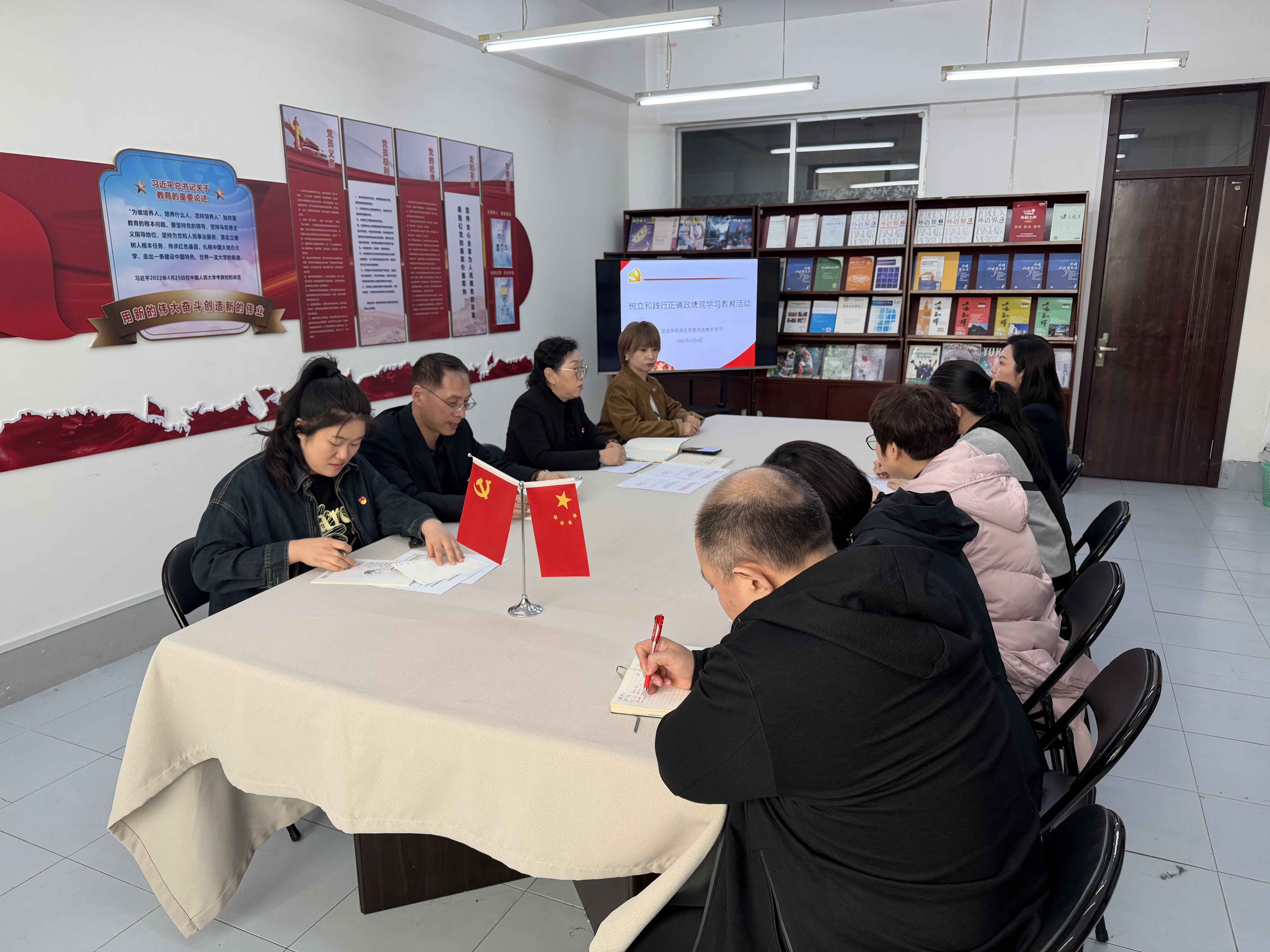 学校机关党委和各党总支、直属党支部闻令而动、迅速落实,把开展树立和践行正确政绩观学习教育作为当前重要政治任务。各基层党组织紧扣学习主题、创新方式方法,通过集中领学、个人自学、案例警学、党课讲学、交流促学等多元形式,组织党员干部原原本本学习习近平总书记关于树立和践行正确政绩观的重要论述、重要讲话和指示批示精神。在学深悟透中锤炼党性修养,在思想碰撞中纠治认识偏差,引导全体党员干部深刻领会“共产党人必须牢记,为民造福是最大政绩”的核心要义,切实把学习成果转化为办学治校、教书育人的生动实践,为学校“十五五”时期高质量发展凝聚起强大思想共识和奋进力量 。