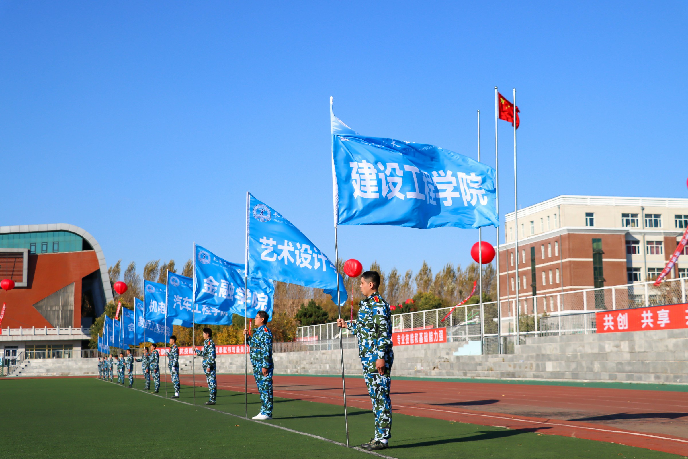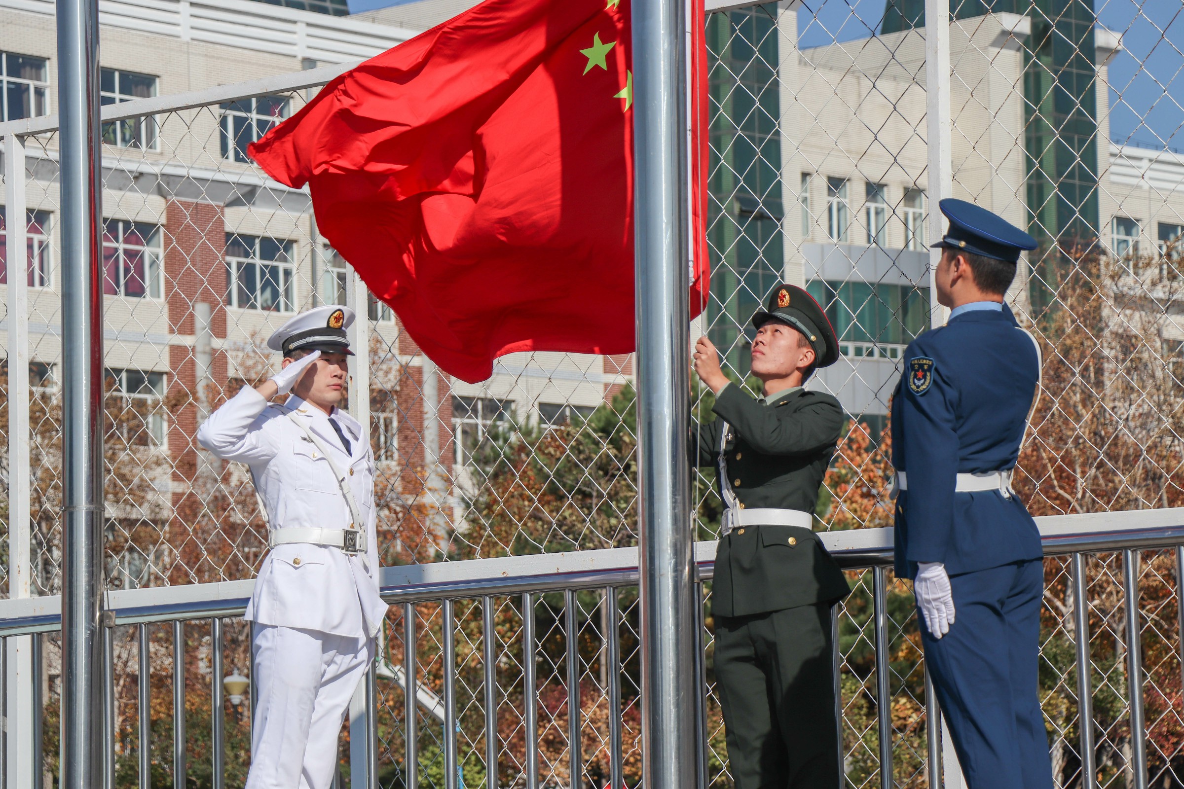 在雄壮的国歌声中,典礼正式拉开帷幕。