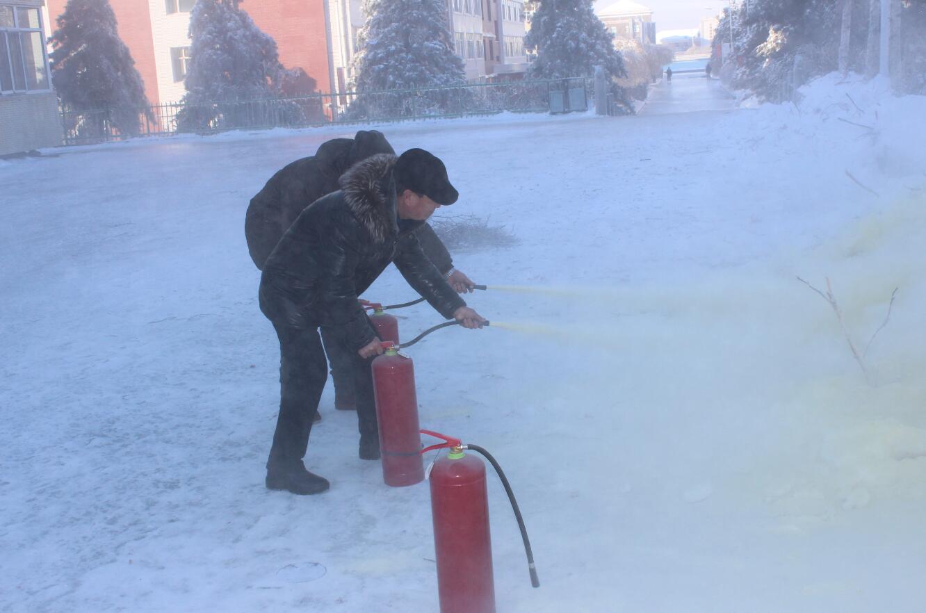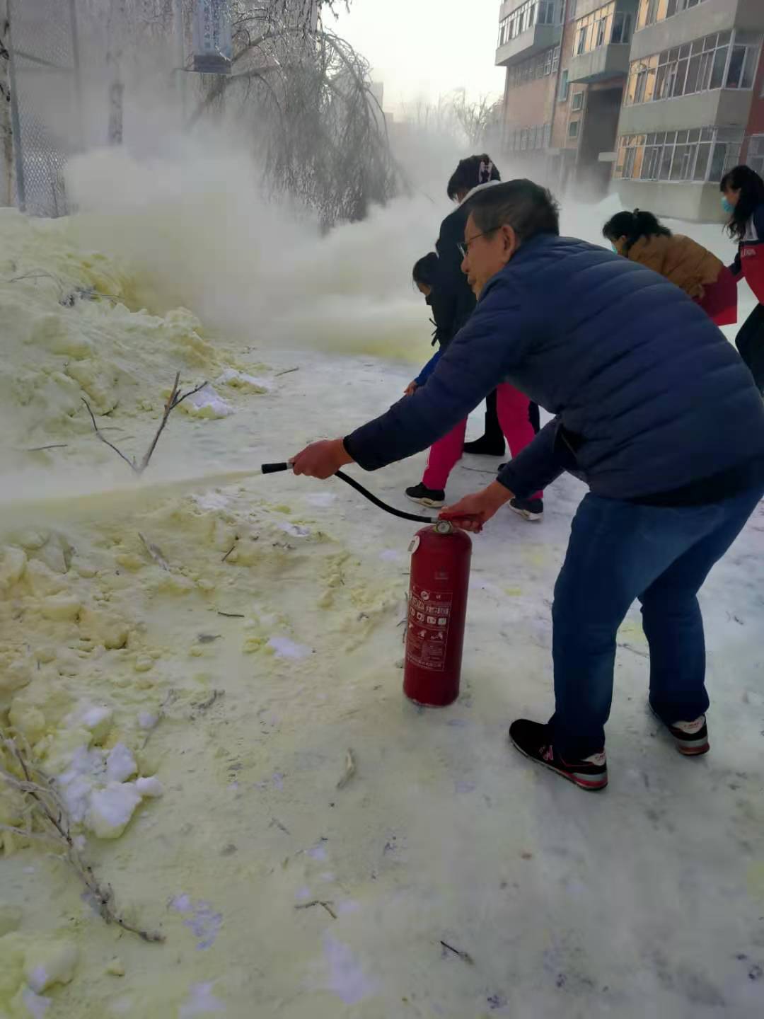 6、组织开展灭火演练。让教职工真真切切的参与到灭火救援之中,在现场讲解灭火器使用方法及注意事项,并现学现用,亲手操作,全员参与,防患未然。