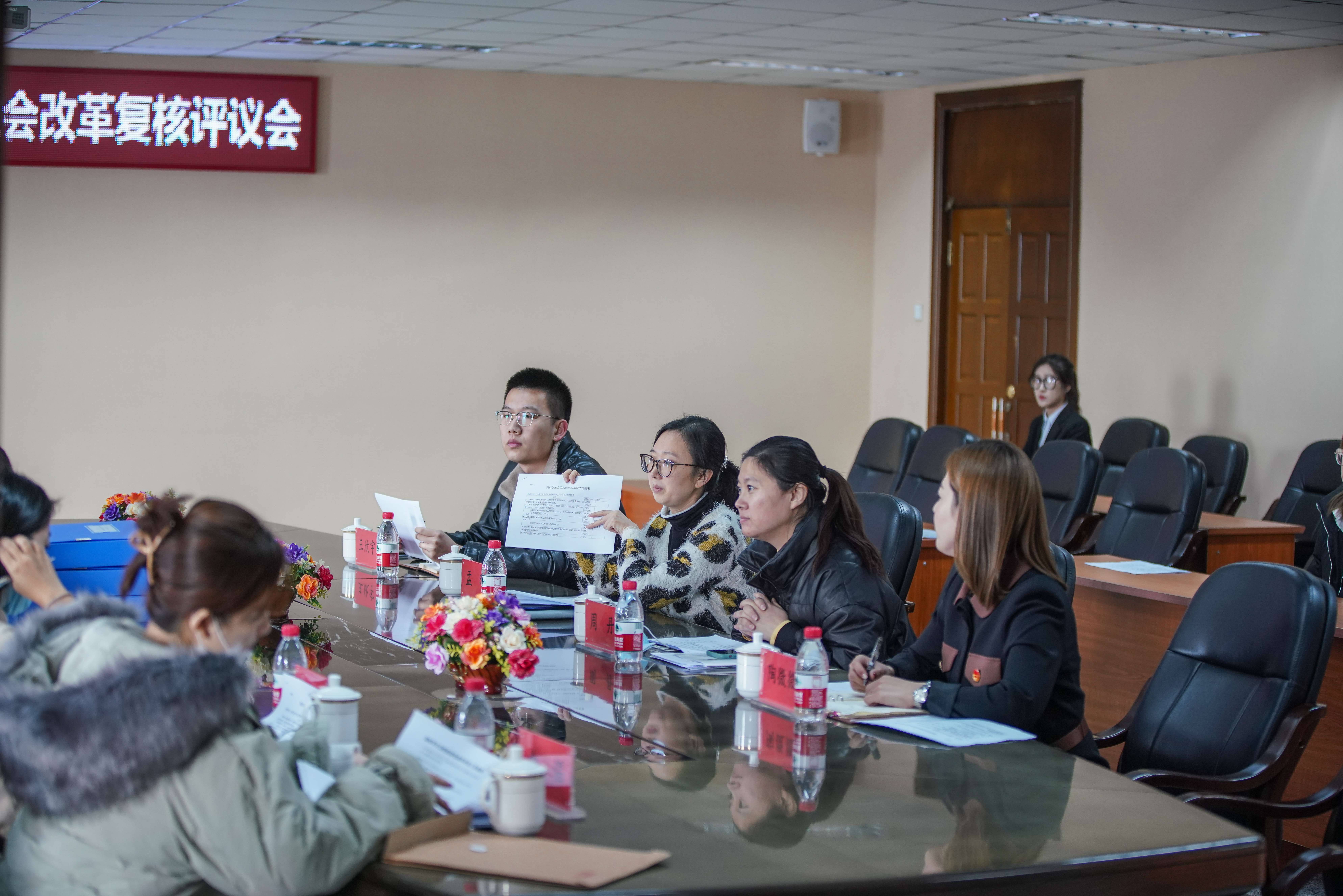 校团委书记孟晔就我校学生会组织改革自评公开情况、《高校学生会组织深化改革评估备案表》《高校学生会组织深化改革台账》逐一向工作组进行了汇报。工作组听取工作汇报后,结合我校改革台账对相关支撑材料进行了查阅。