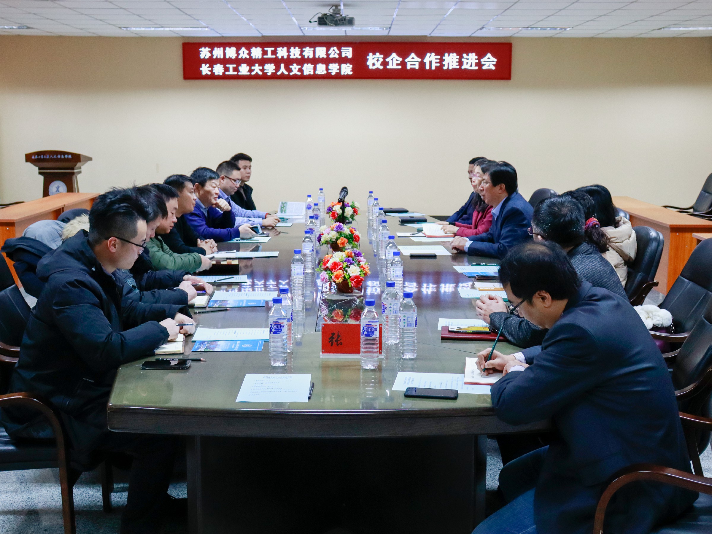 郝大川副总监简要介绍了企业发展情况,他表示,截止到目前长春工业大学人文信息学院有72名毕业生在博众学习工作,博众精工非常重视与学校合作关系,此次来访就是总结以往合作成果,规划未来深度合作。