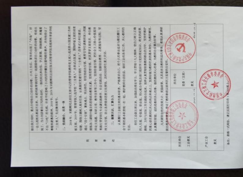宋殿辉同志自担任工会副主席以来,认真地完成本职工作及工会布置的其他各项工作,积极参加工会组织的各项活动,积极做好职工思想工作,维护教职工的合法权益,为教职工办实事办好事,取得了一定的成绩。