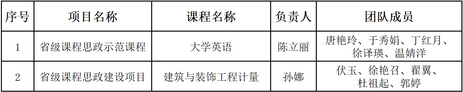 4月19日,吉林省教育厅印发了《关于公布首批省级课程思政示范(建设)项目名单的通知》(吉教高[2021]5号),我校《大学英语》《建筑与装饰工程计量》两门课程成功入选首批省级课程思政示范(建设)项目。