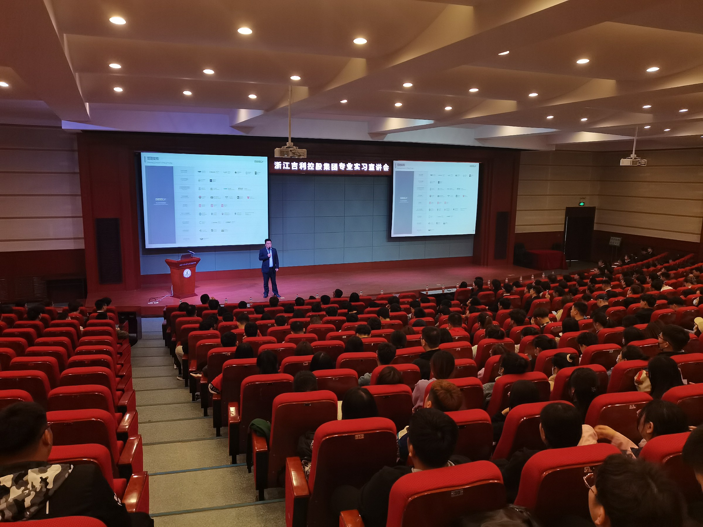 下午,在学校报告厅,召开了吉利实习宣讲会,学校汽车工程学院、管理学院2018级全体学生参加,经过学生报名、企业面试、线上笔试等环节,有40余名学生通过考核,进入吉利汽车集团实习、就业。