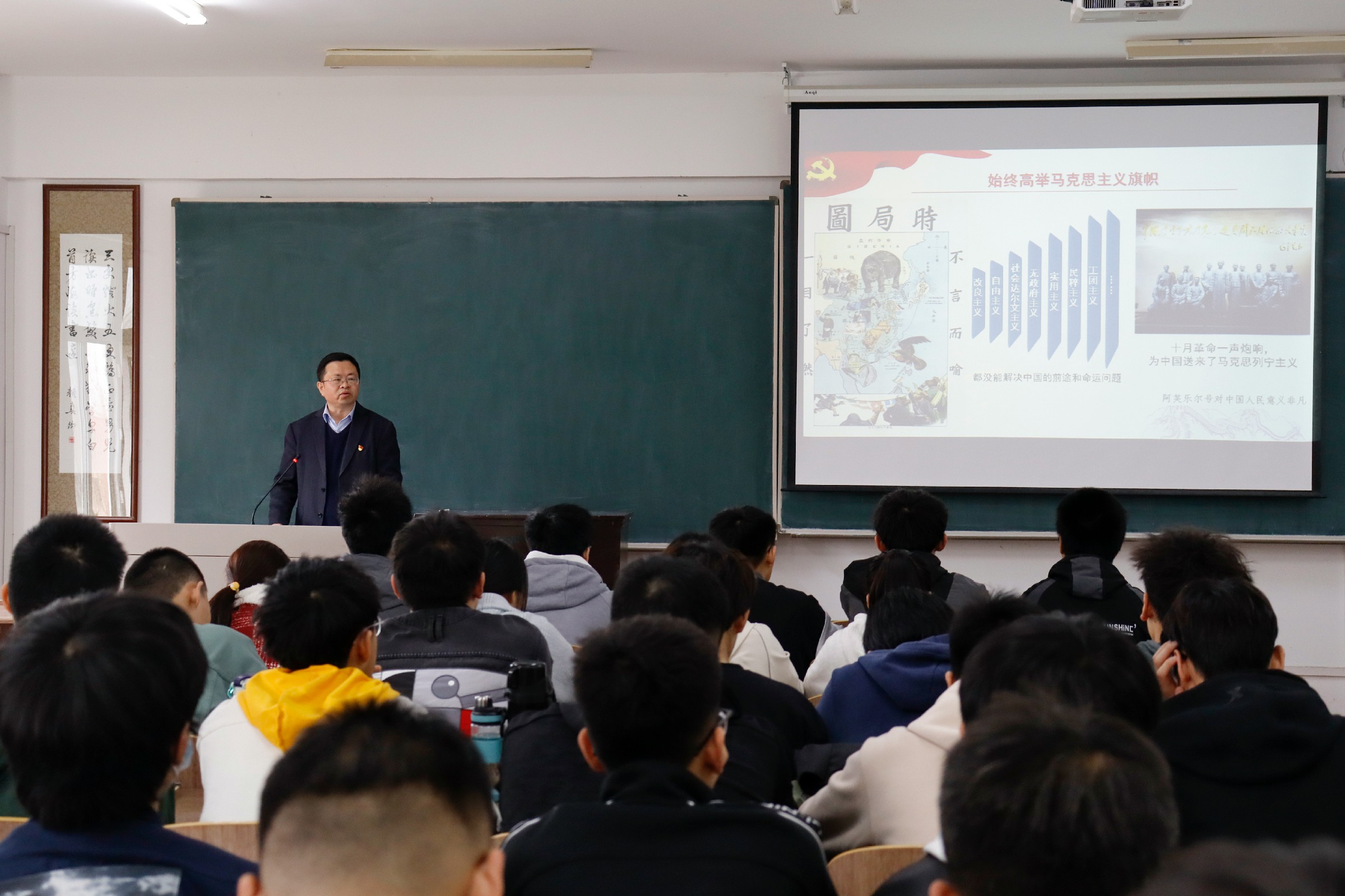 为深入贯彻落实习近平总书记在学校思想政治理论课教师座谈会上的重要讲话精神,上好新时代思想政治理论课,我校党委高度重视思政课程质量提升工作,校领导带头宣讲思政课。4月28、29日,校党委书记程军两次走入课堂,以《中国共产党为什么能》为题,为商学院和机电工程学院大学生上了两堂内涵丰富、鲜活生动的思政课。