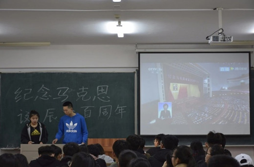 学院班子成员集体观看纪念马克思诞辰200周年大会