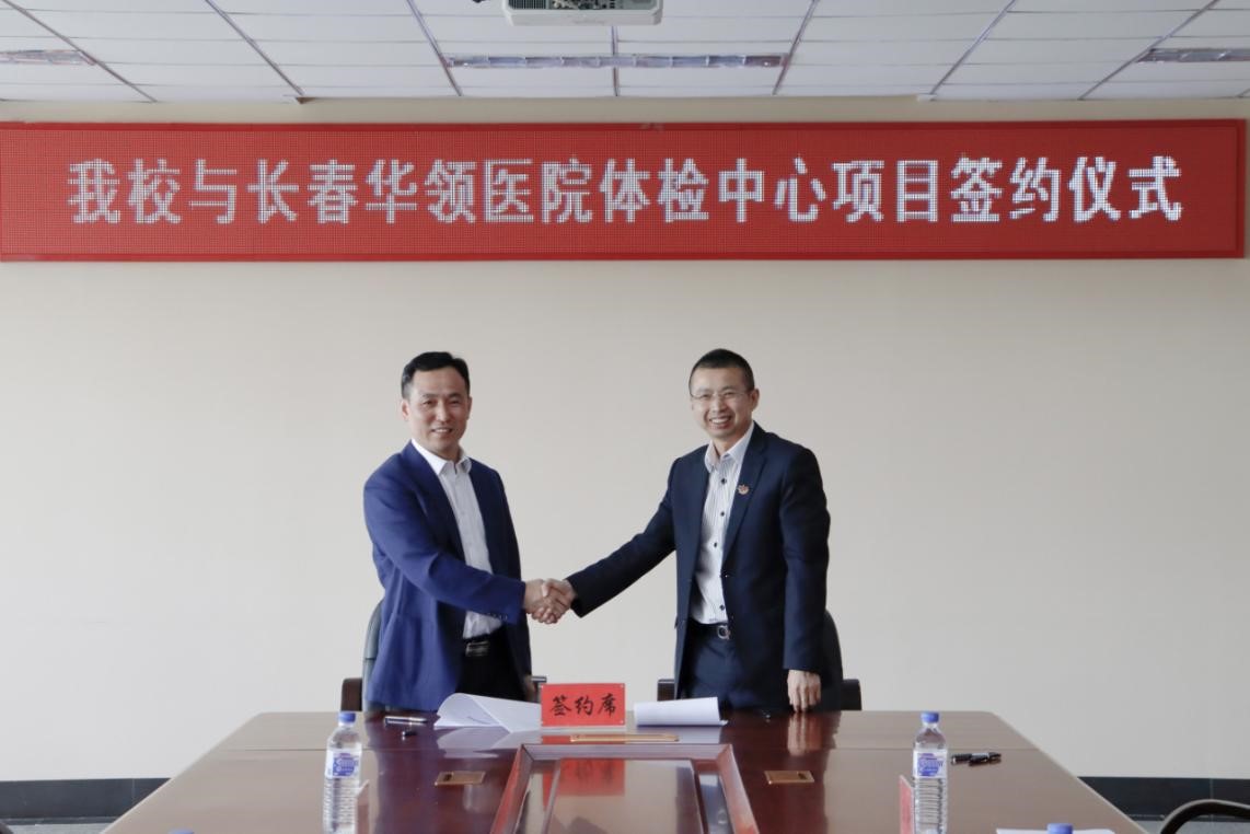 签约仪式上,李晓科首先向长春华领医院体检中心介绍了我校的基本情况、办学思想和发展理念,并就教职工体检相关工作提出了具体要求。李海江表示,一定按照学校的要求,全心全意为我校教职工提供优质服务。