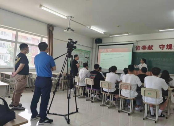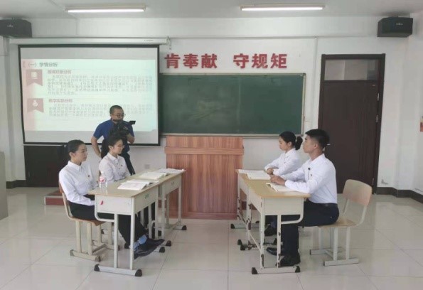 在摄录过程中,四位老师向思政教师和参赛大学生展示了何为敬业精神、何为无私奉献、何为服务至上、何为大局意识。比如,为更好体现视频效果,几位老师主动提前介入,在准备试讲阶段就参与听课讨论,从技术角度提出改进建议。正式拍摄时更是高度负责、耐心细致,无论是化妆、机位、灯光、音效无一不体现出专业水准。对仅仅十分钟左右的视频拍摄,往往要反复拍摄多遍,选取最好的备用。视频录制最难最大的工作量是后期剪辑制作。由于几位老师都有自身的工作,而上报视频又有时间要求,因而几次后期剪辑制作都是在下班后连夜加班完成,往往工作到深夜,完成剪辑合成并刻好光盘。