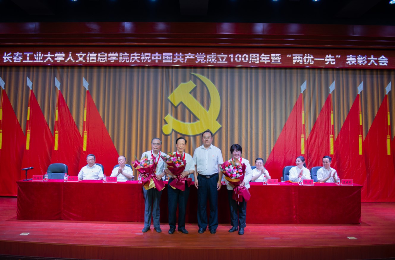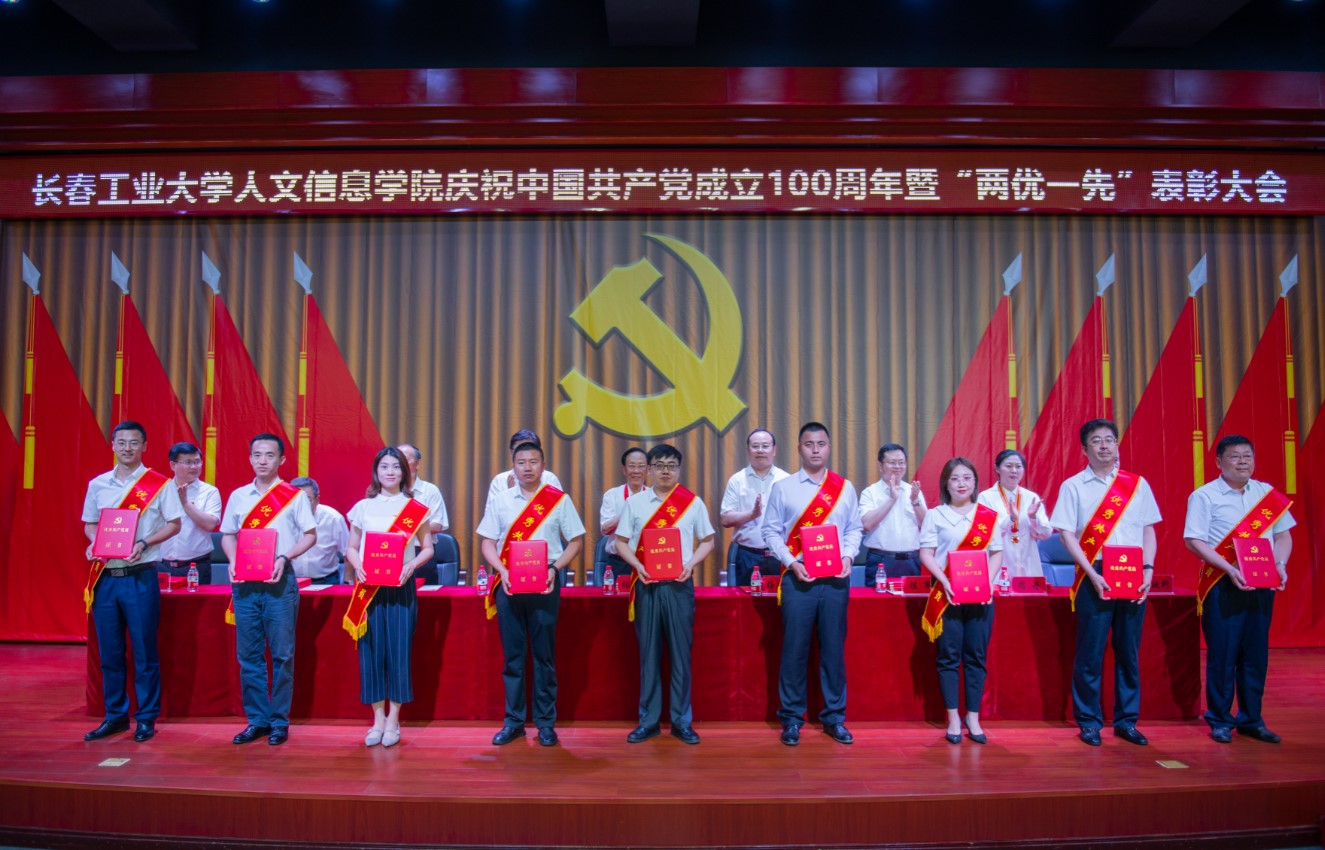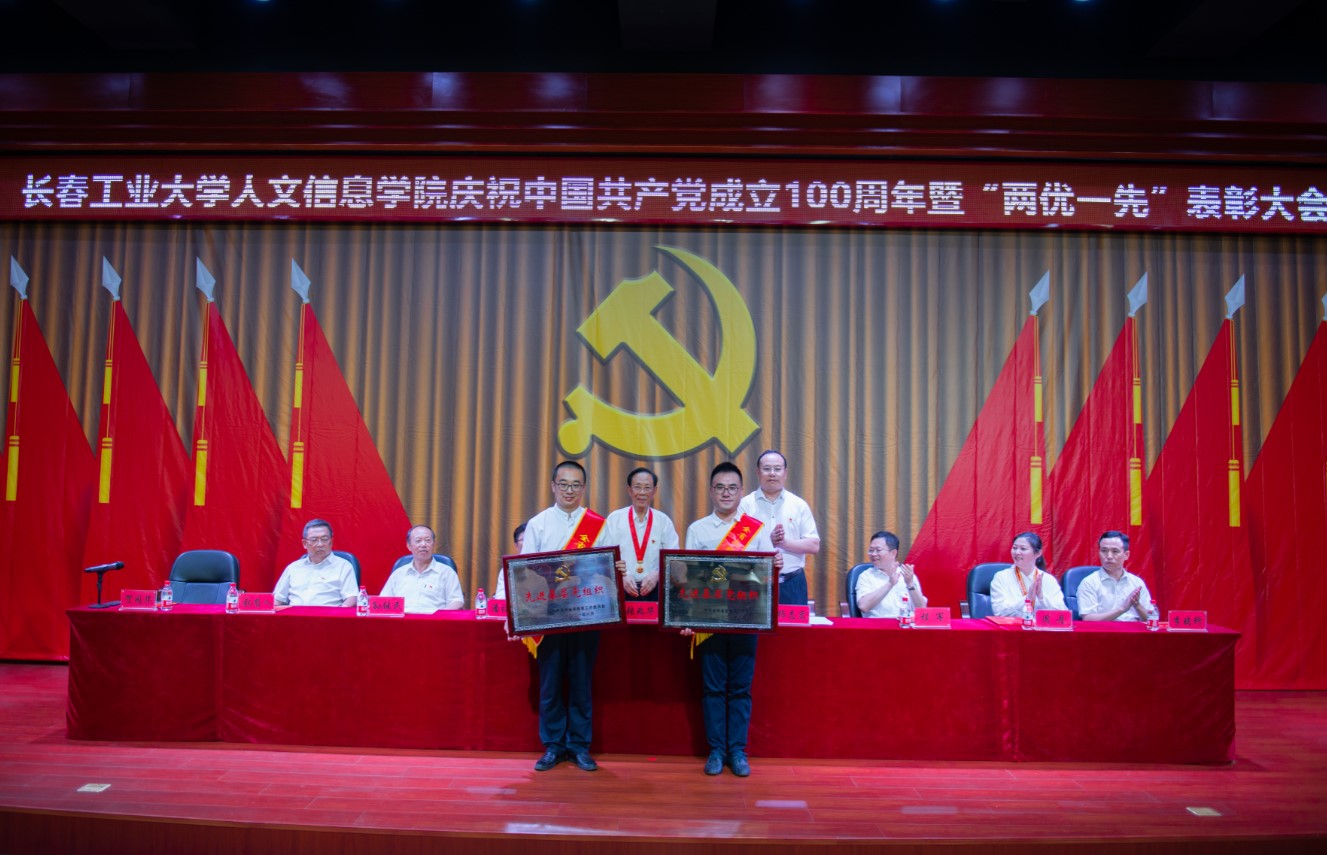 党委副书记周丹宣读我校受到省委和省委教育工委表彰的“两优一先”名单及《中共长春工业大学人文信息学院委员会关于表彰优秀共产党员、优秀党务工作者和先进基层党组织的决定》。