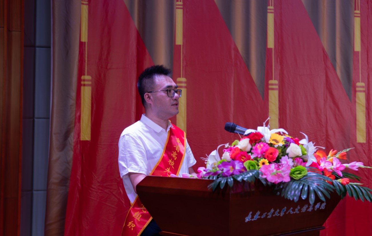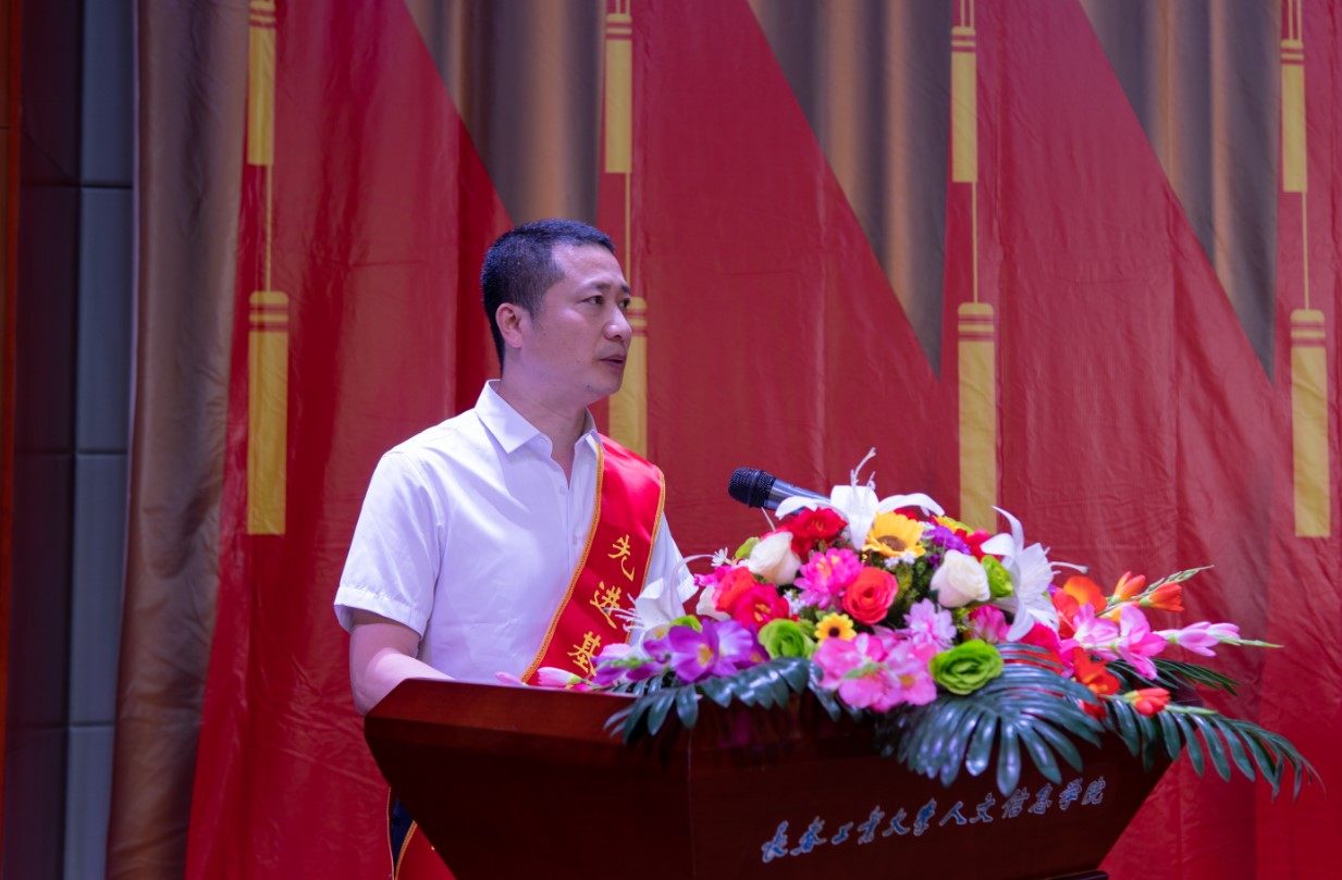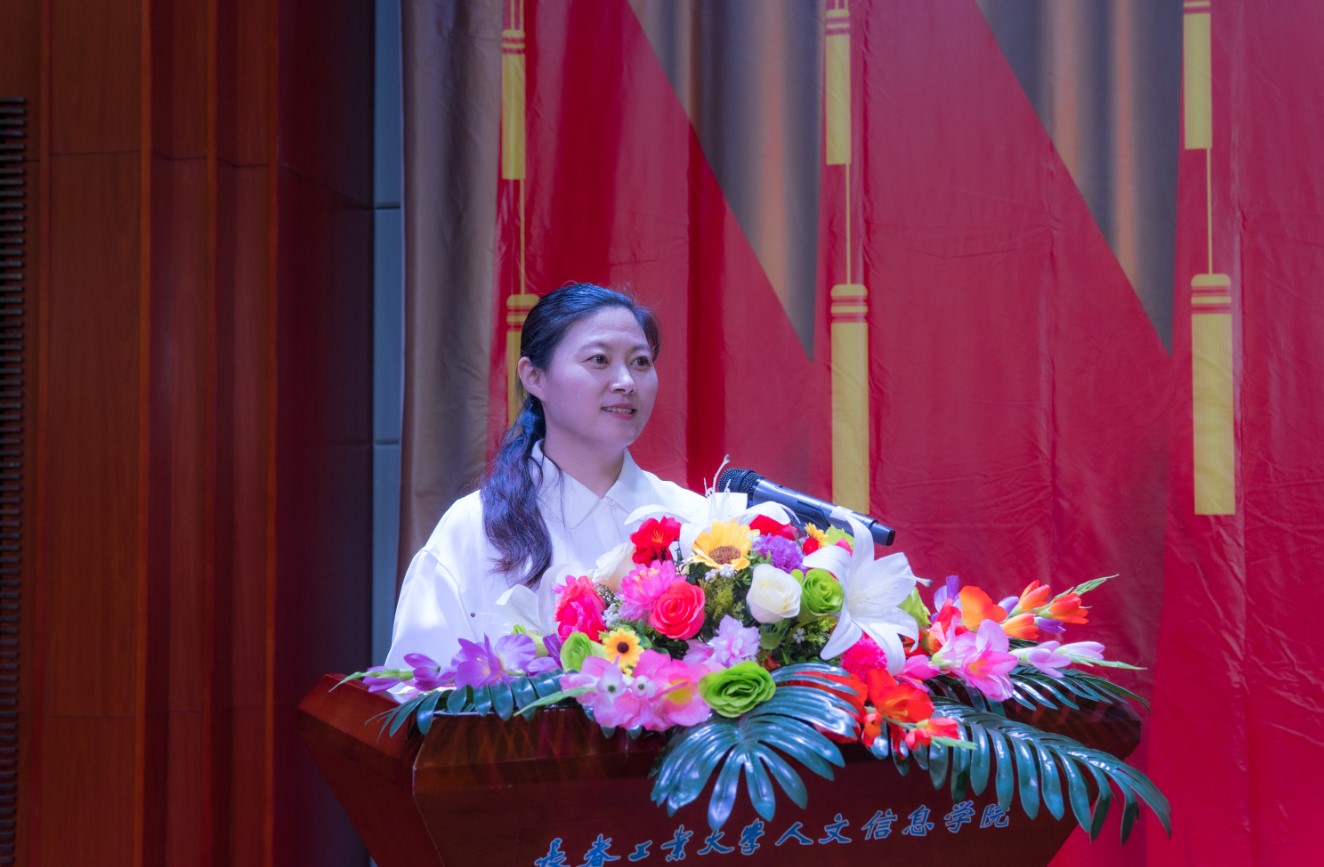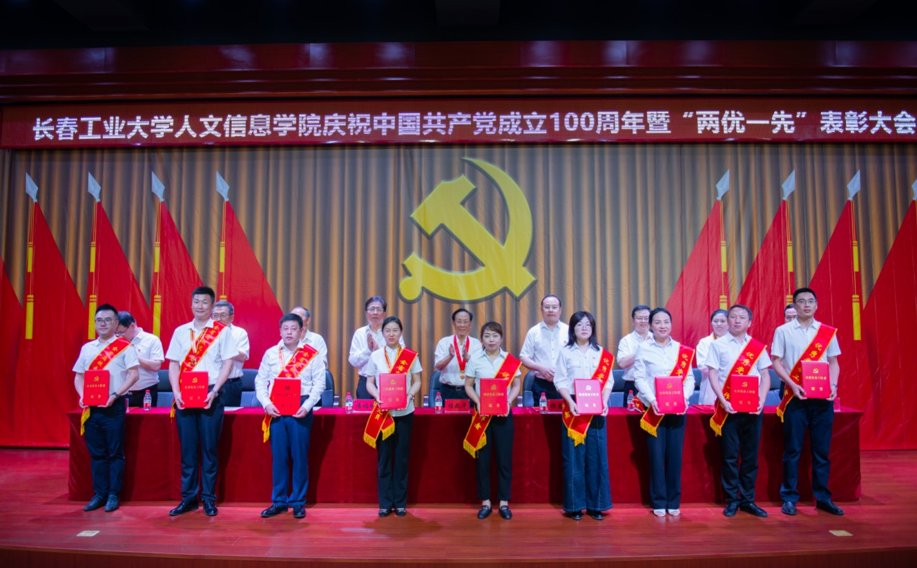 党委副书记周丹宣读我校受到省委和省委教育工委表彰的“两优一先”名单及《中共长春工业大学人文信息学院委员会关于表彰优秀共产党员、优秀党务工作者和先进基层党组织的决定》。