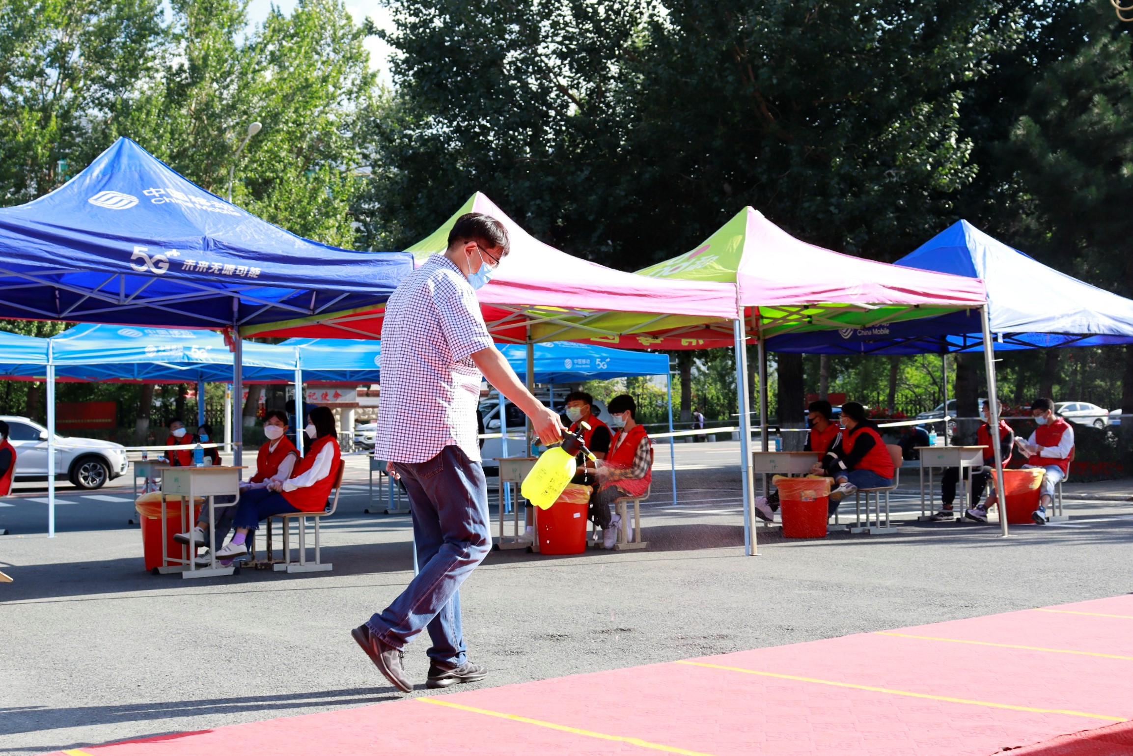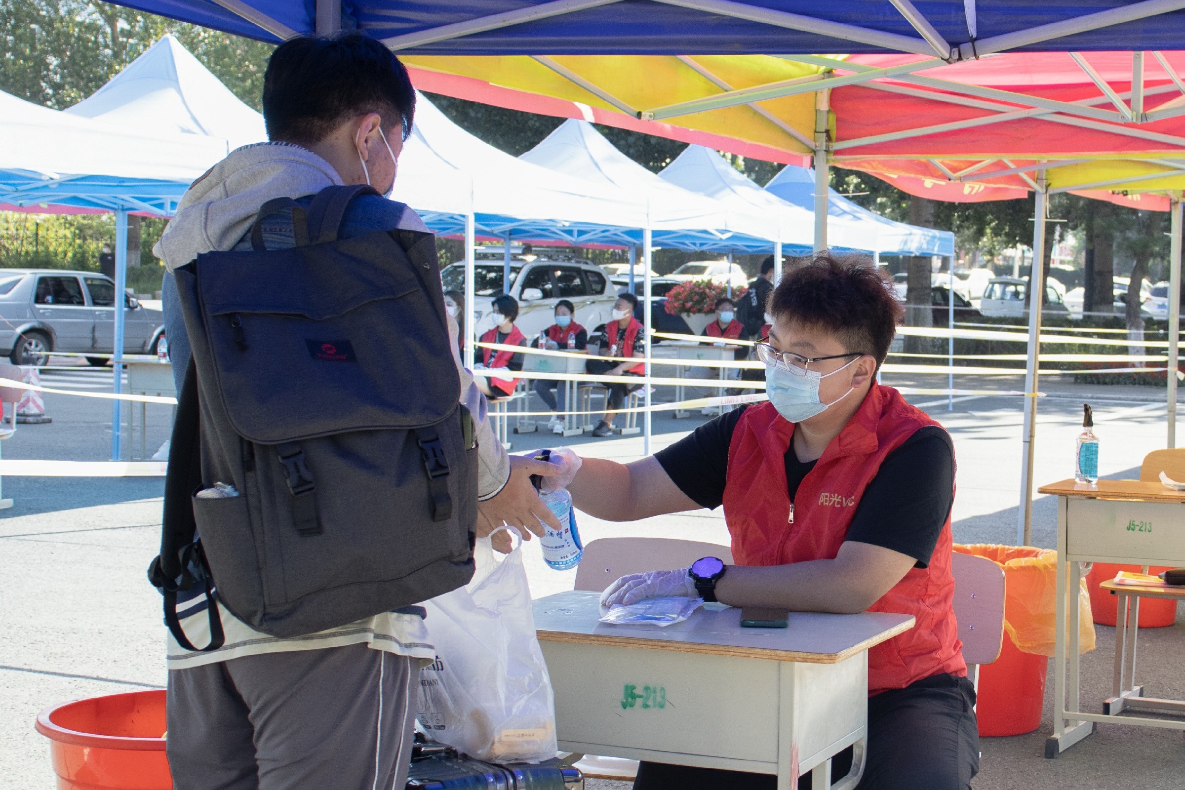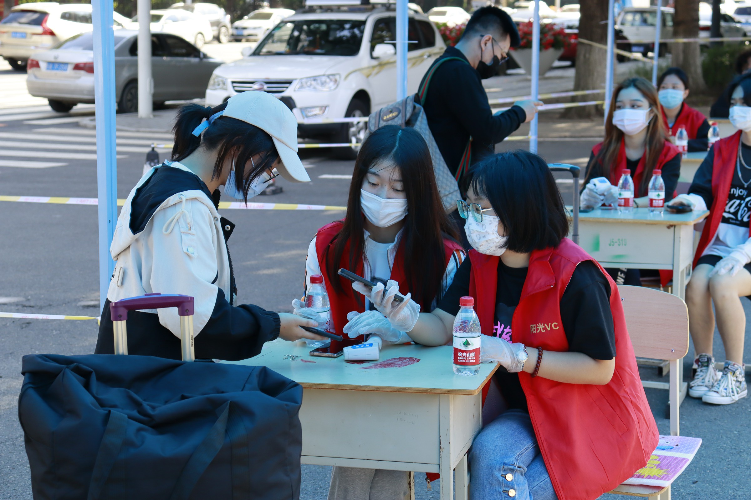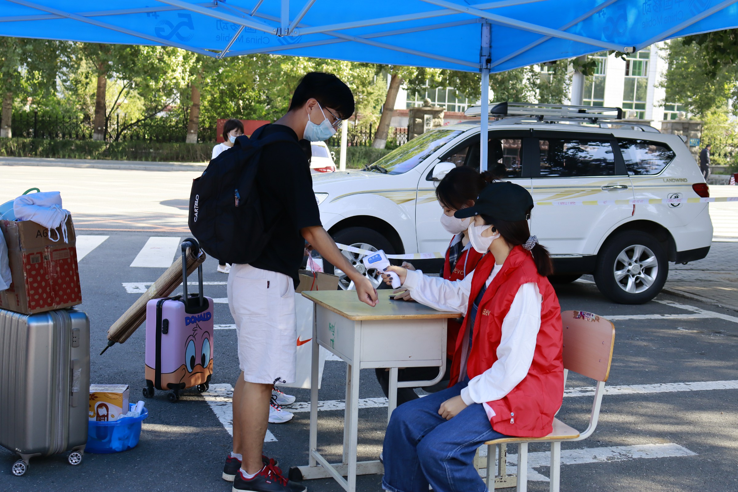 8月27日早7点,长春工业大学人文信息学院迎来了首批秋季开学返校学生。他们在现场工作人员和志愿者的引导下,有序扫描“吉祥码”、体温检测、身份核对、更换口罩,并对携带物品进行消毒。
