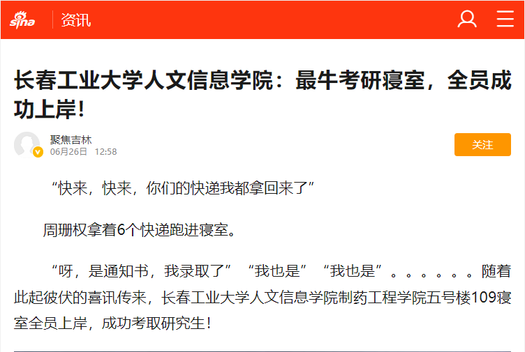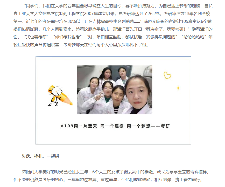 我校制药工程学院五号楼109寝室全员上岸,成功考取研究生! 新浪新闻,中国教育在线等媒体对我校制药工程学院五号楼109寝室全员成功考取研究生进行报道。