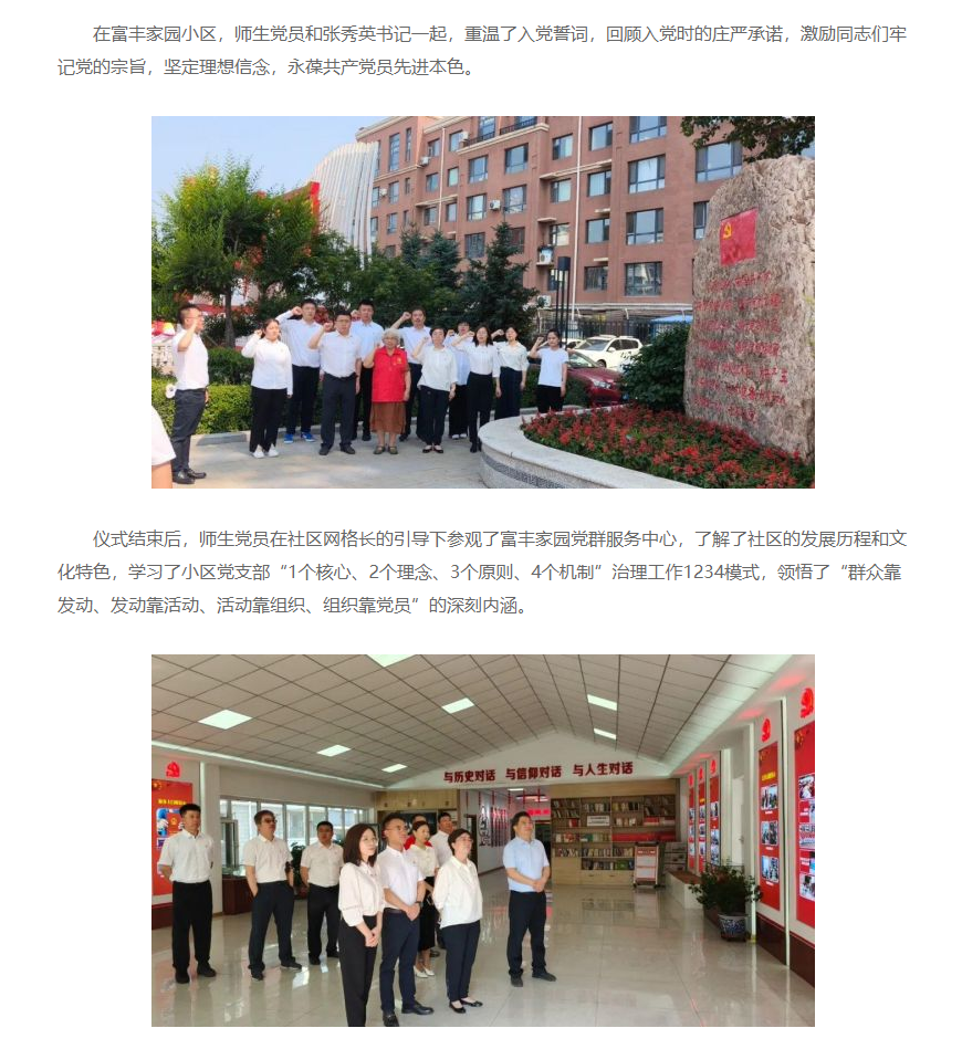 为庆祝中国共产党成立103周年,7月1日早 8 点,建设工程学院师生党员代表赴长春市宽城区富丰家园小区,参加“国旗奶奶”张秀英主持的“红心向党·薪火相传”升国旗仪式。学校党委组织部部长王春玲,长春市吉美社会组织发展服务中心、民盟宽城区委及长春市宽城区柳影街道富丰路社区代表,共同参加本次活动。