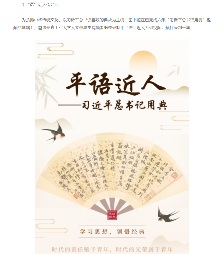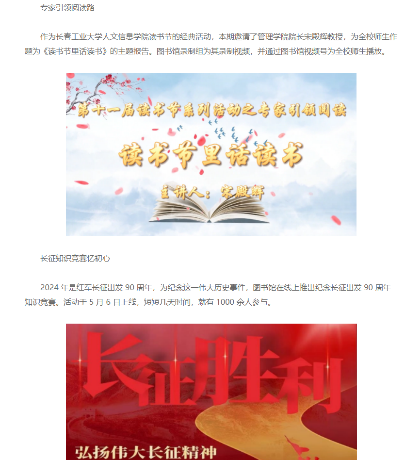 在第二十个世界读书日来临之际,长春工业大学人文信息学院第十一届读书节正式拉开帷幕。本次读书节以“书香砺初心,共筑两强梦”为主题,旨在通过一系列丰富多彩的活动,激发师生的阅读兴趣,提升校园文化氛围。