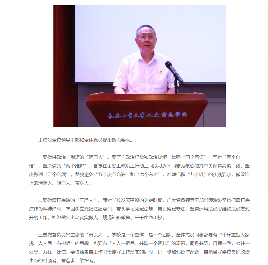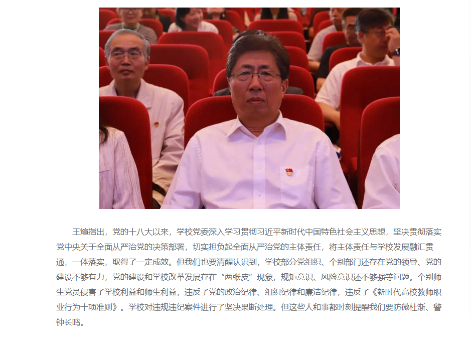 7月3日下午,学校在学术报告厅召开党纪学习教育集体廉政谈话会。学校创建人、董事长张兆华,校长潘福林,党委书记王煊等领导班子成员,党委委员,各部门负责人以及全校党员教职工共同参会。王煊在会上作集体廉政谈话。