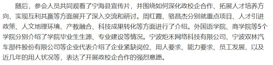 新浪吉林对宁海县人力资源和社会保障局携企业到我校开展政校企座谈会进行报道。