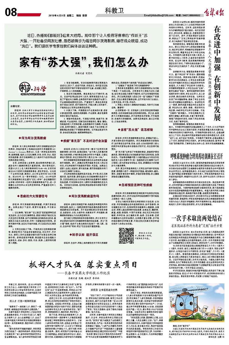 2019年4月9日,《吉林日报》在第八版以“在改进中加强 在创新中发展”为题,报导我院加强思政课程建设工作情况。